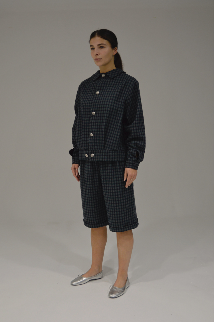 The Ada Button Jacket is crafted from a soft wool-blend, combining a vintage-inspired aesthetic with contemporary tailoring. Featuring statement vintage buttons at the back, a refined collar detail, and a dropped waist with a thick band, it offers generous volume and an oversized fit. Effortlessly stylish, the Ada bridges the gap between modern and classic fashion. Pair it with the Tabitha short for a complete, fashion-forward look.