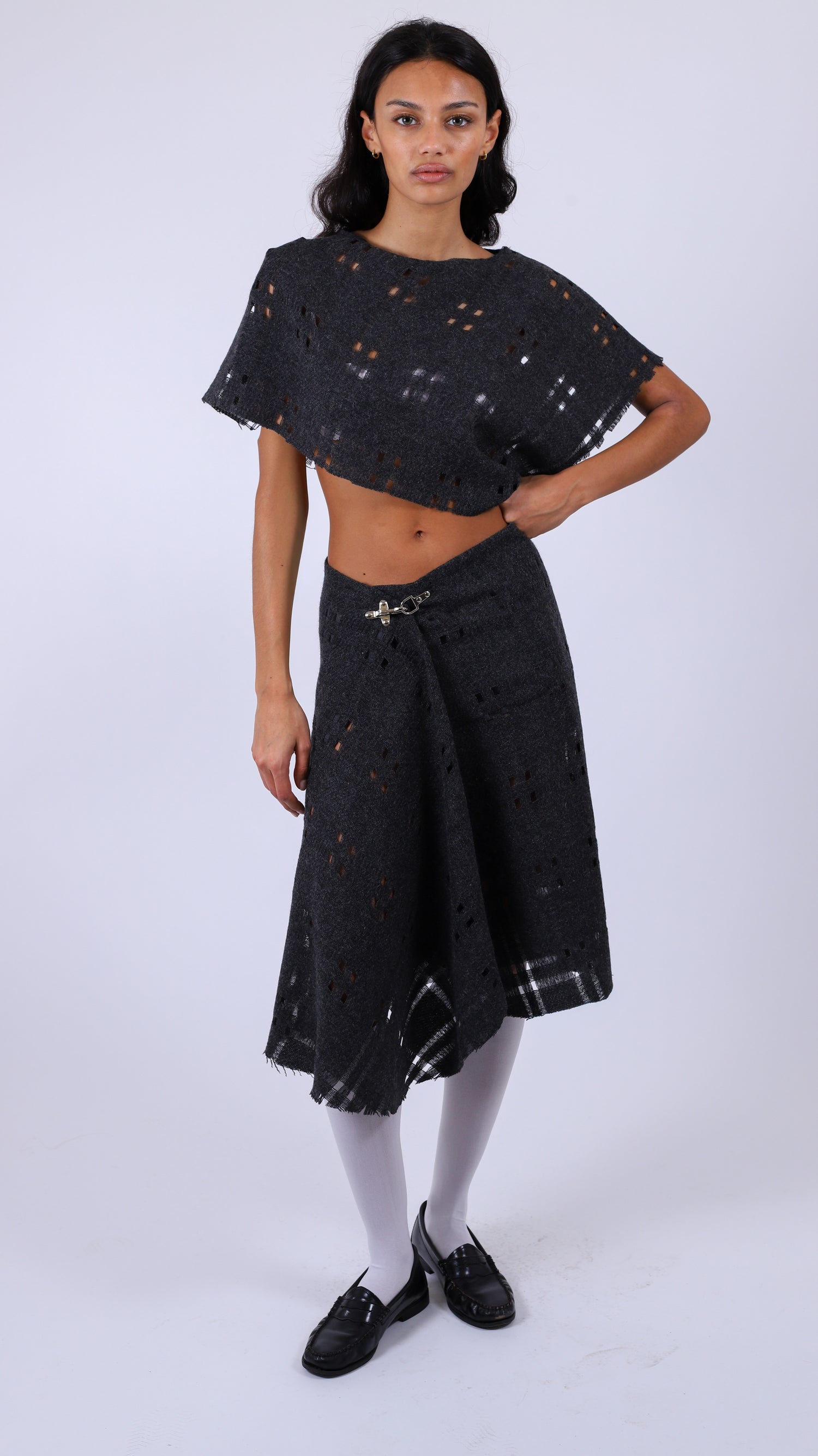 The Selene Skirt is your go-to piece for effortless style. This wool blend skirt strikes the perfect balance between bold and refined, featuring distinctive metal hardware that catches the light beautifully.