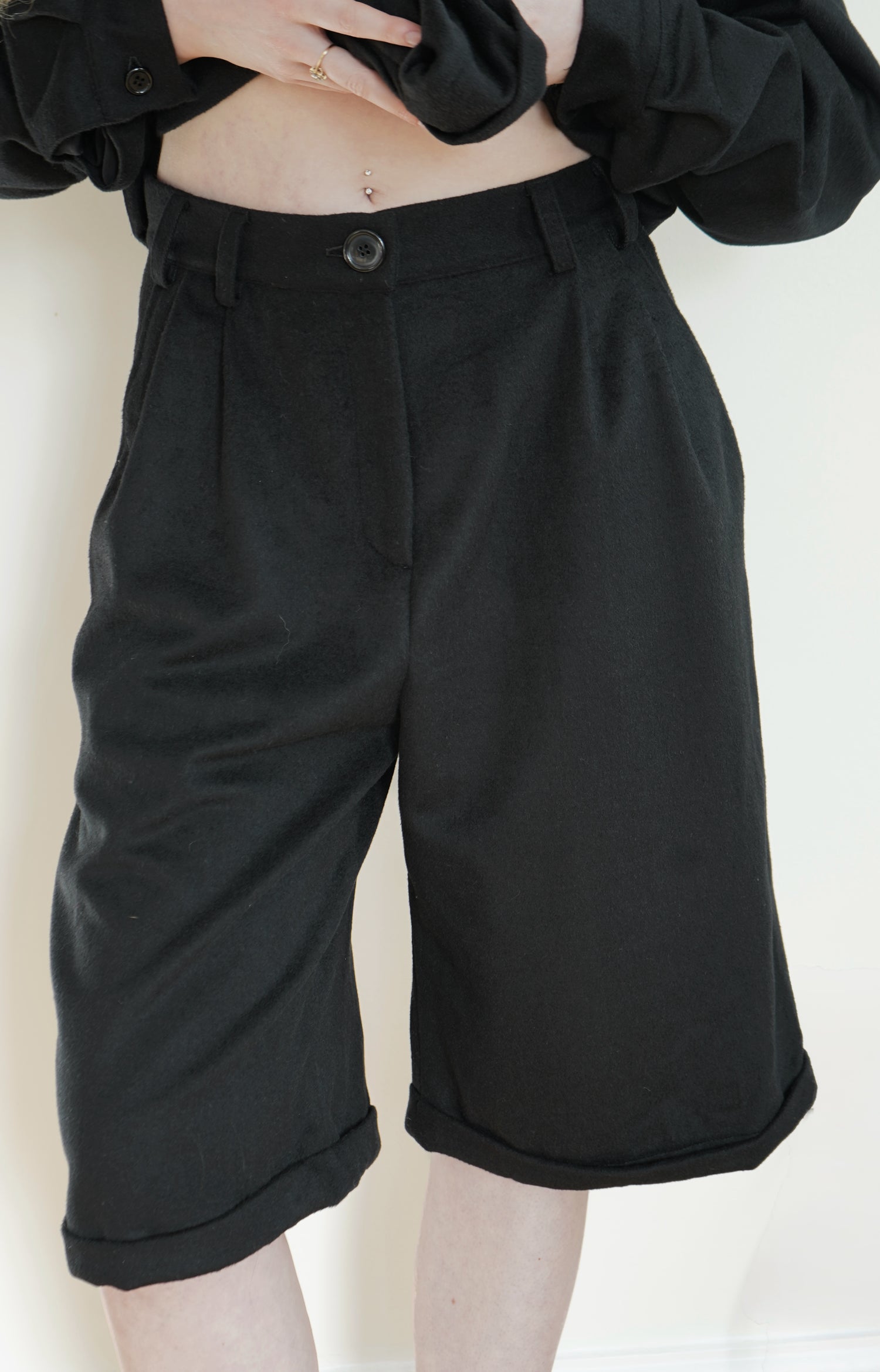 The Tabitha Short is crafted from a soft wool blend that offers both warmth and structure. Featuring two front pleats and upturned hems, this vintage-inspired silhouette flatters the form while maintaining an effortless feel. The versatile cut transitions seamlessly from day to evening — pair it with the matching Ada Jacket for a coordinated, nostalgic look.